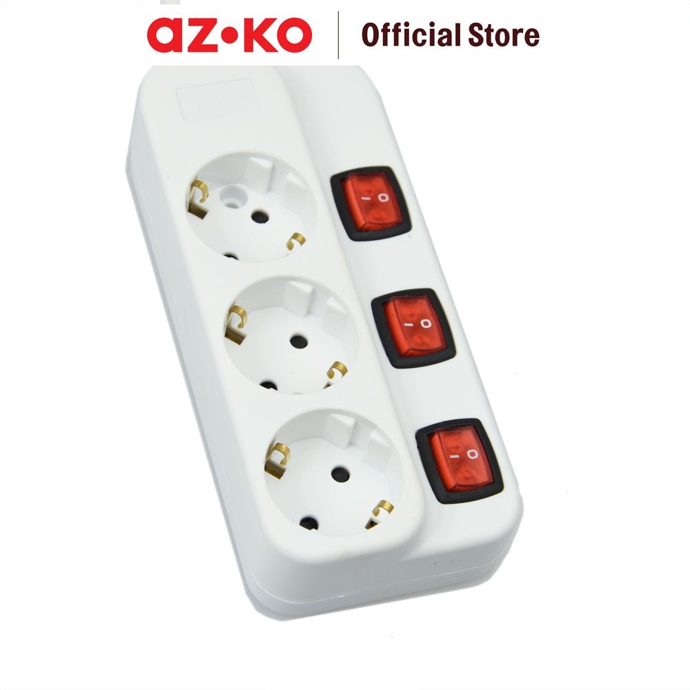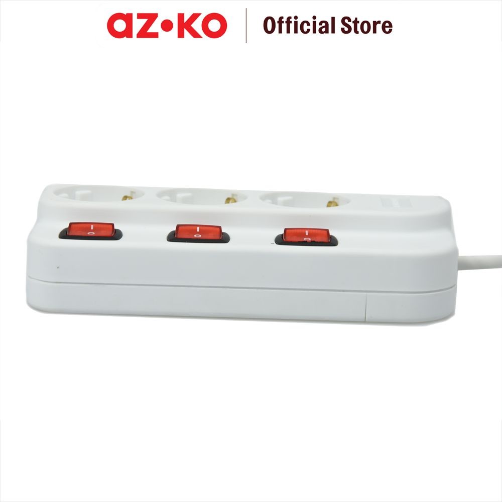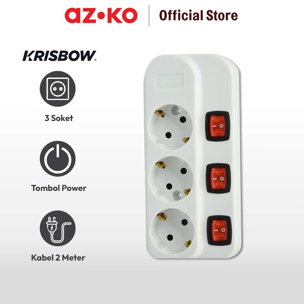 AZKO Krisbow Stop Kontak 3 Socket Kr-4338 - Putih Electric Socket Terminal Colokan Listrik Peralatan Elektronik Extensio