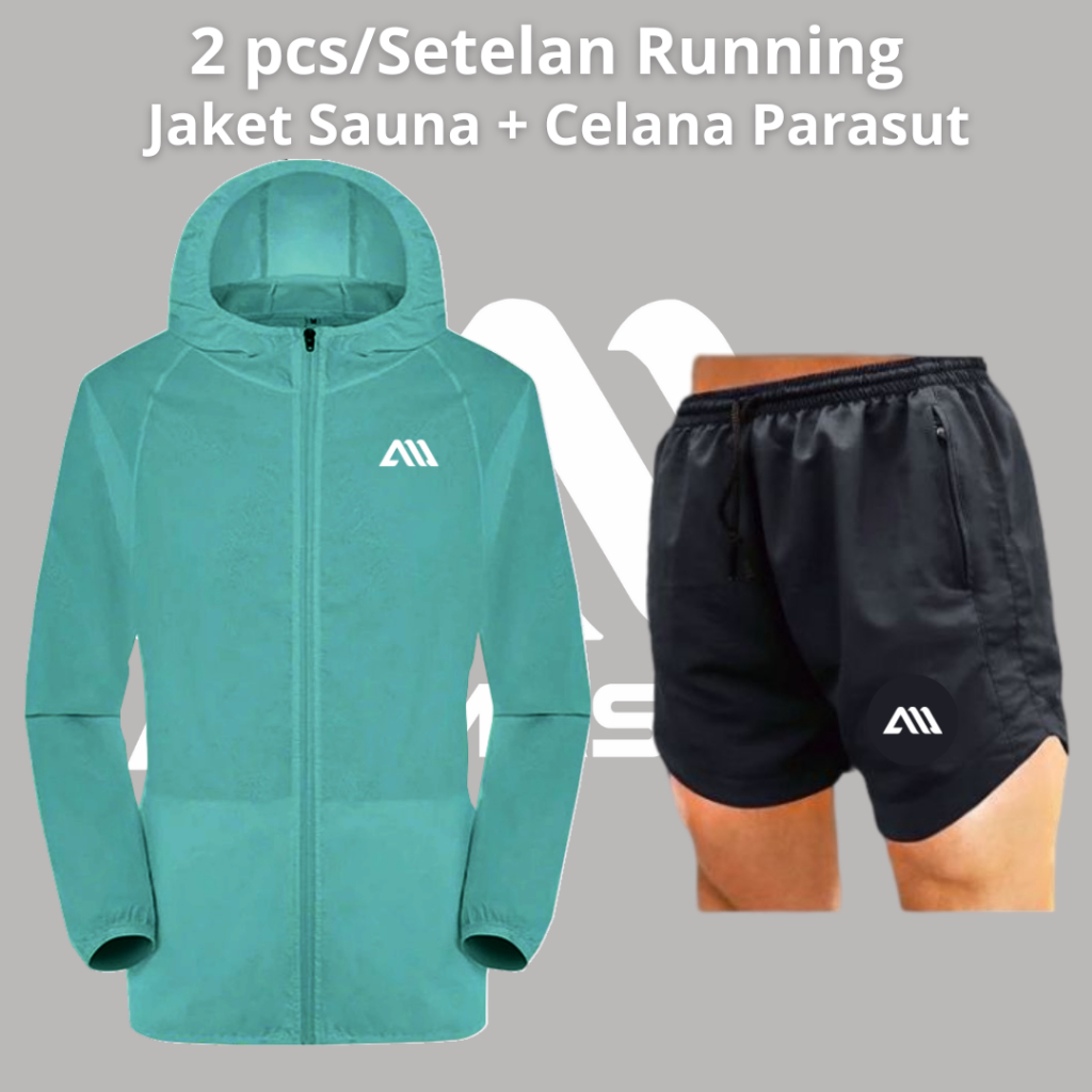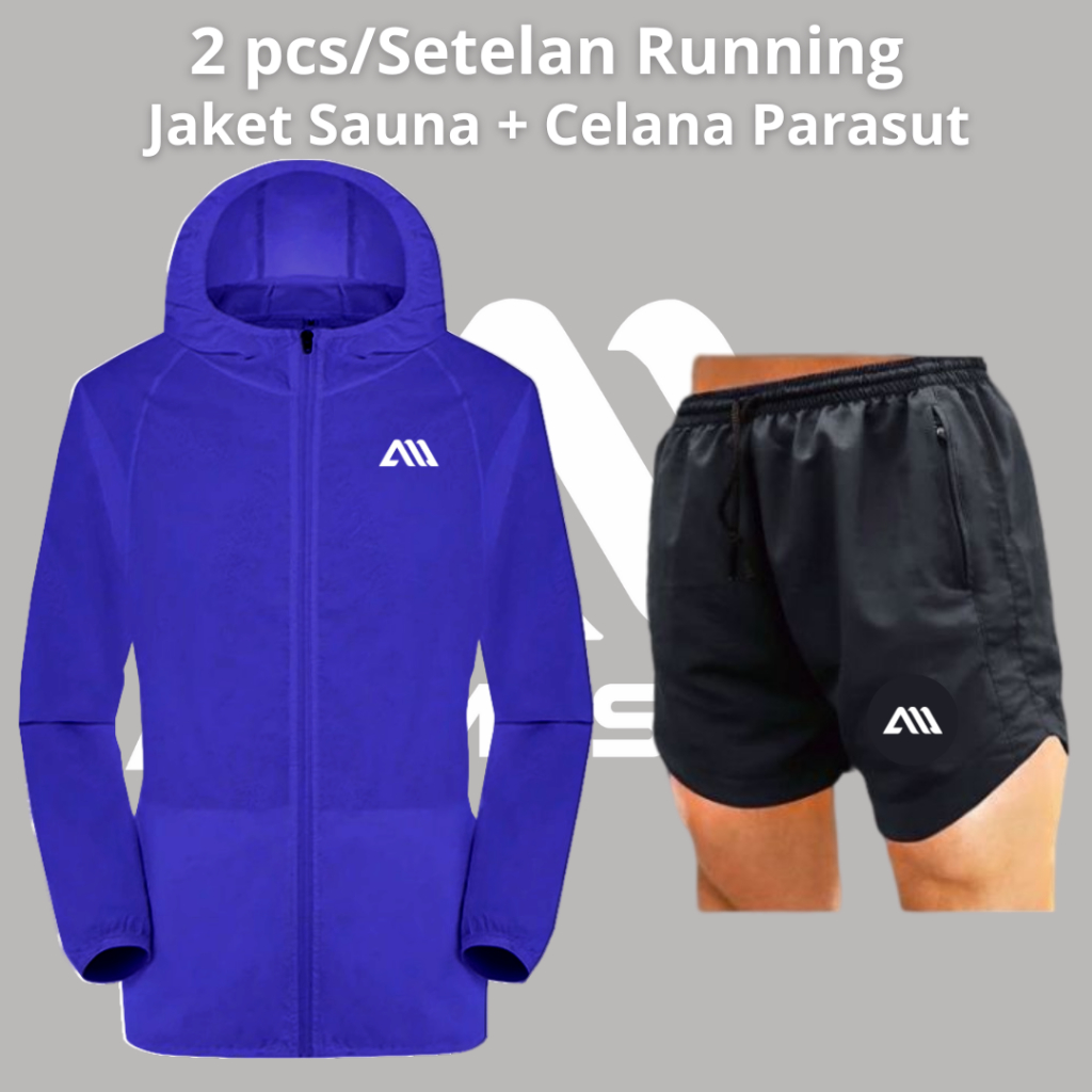 2 in 1 Setelan Olahraga Running Jaket Parasut Sauna + Celana Pendek Parasut Running