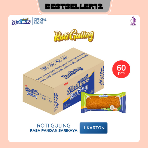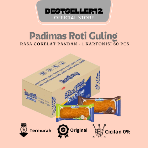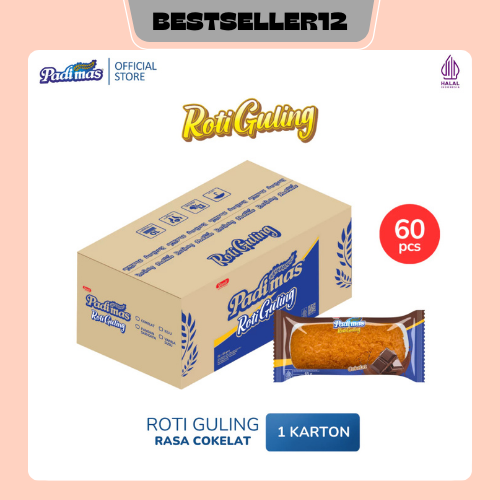Padimas Roti Guling Rasa Cokelat Pandan - 1 Kartonisi 60 pcs