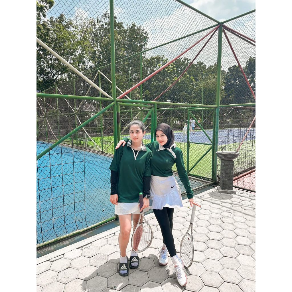 (ATASAN SAJA) Kana Studio Longsleeve Slanted Buttons Top / Tennis Top / Tennis Shirt / Golf Shirt / Sport Shirt / Padel Top / Padel Shirt / Hijab Sportwear
