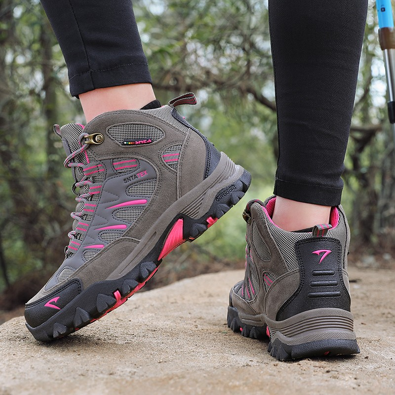 Sepatu Gunung Wanita SNTA 613 Mid Series Semi Waterproof Hiking Shoes - Grey Fuschia