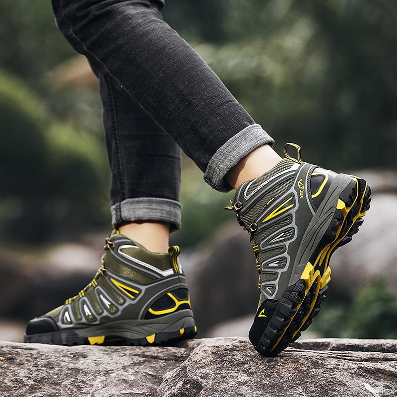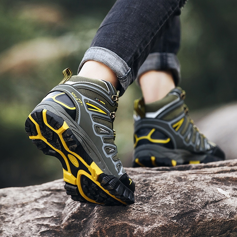 Sepatu Gunung Pria SNTA 500 Unisex Mid Series Hiking Shoes Semi Waterproof Original - Green Yellow 39 40 41 42 43 4445 4