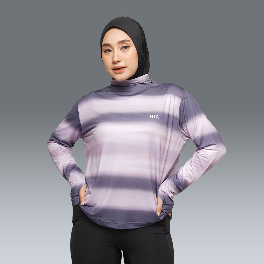 HIA Everywear Bhava Printed Baju Olahraga Wanita Running Gym Padel Lari Slim Fit Long Sleeve Bahan Dry Fit Hecktive Fabric