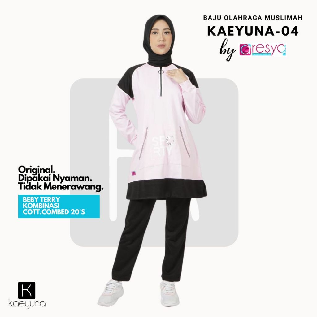ARESYA - Setelan Baju Olahraga Tunik Wanita Muslimah Kaeyuna-04 BabyPink