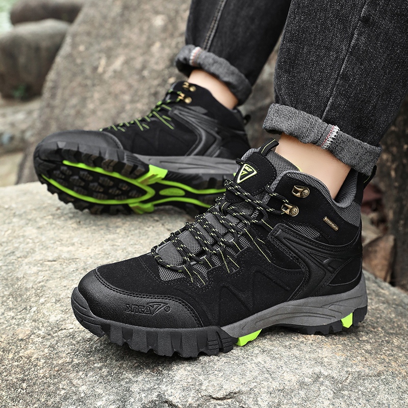 Sepatu Gunung SNTA 487 Black Red Original Mid Series Hiking Camping Outdoor Waterproof