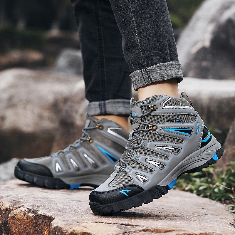 Sepatu Gunung SNTA 500 Original Grey Blue Semi Waterproof Mid Series Unisex Hiking Shoes Outdoor Offroad Mountaineering