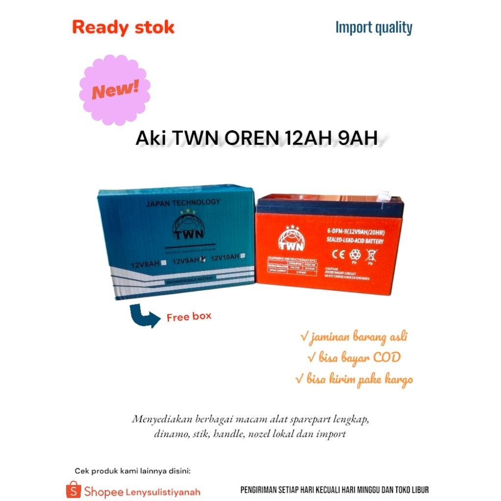 AKI BATTERY MSA 9 AH 12 V | AKI BATTERY TWN 9 AH 12 V | AKI MSA/TWN OREN | AKI SPRAYER HAMA PERTANIAN| AKI SEPEDA LISTRIK