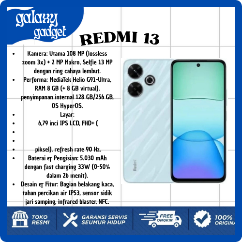 XIAOMI REDMI 13 8/128 GB - 13 RAM 8GB ROM 128GB RESMI