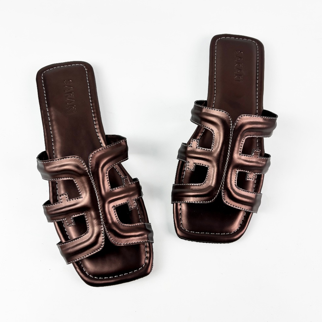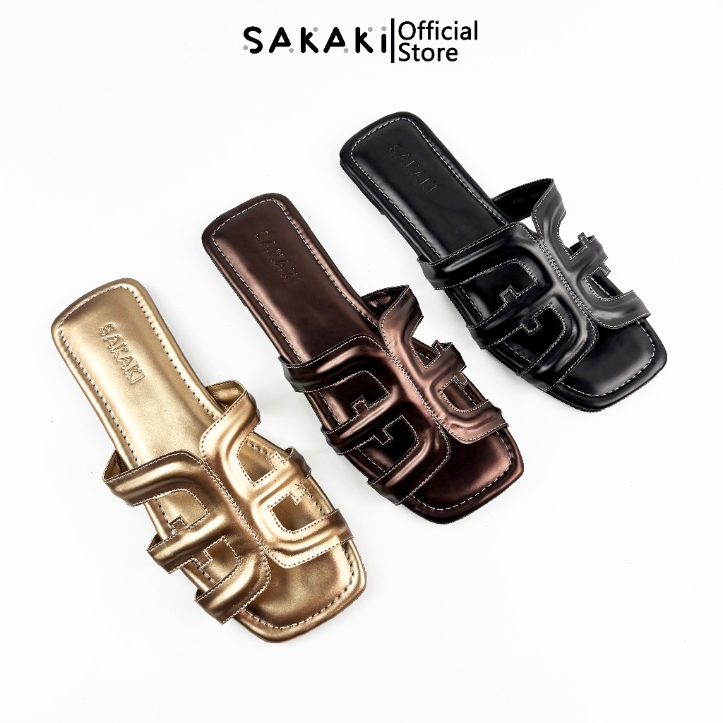 Sendal Flat Wanita Terbaru Kekinian Murah - SAKAKI Helena - Sandal Wanita Flat Sol Karet Teplek Original