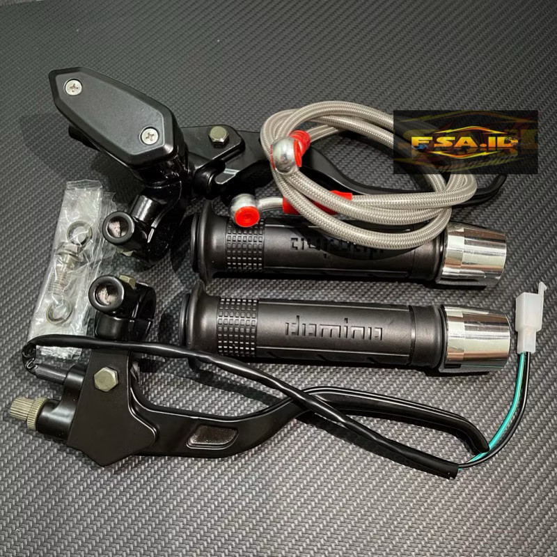 Paket 4in1 Master Rem Tabung Tipe Oval + Handgrip Sisik + Jalu Stang Chrome + Selang Rem 95cm Universal Motor jvm