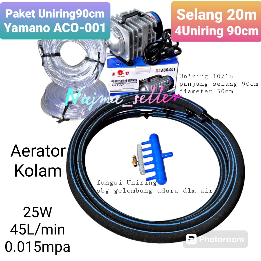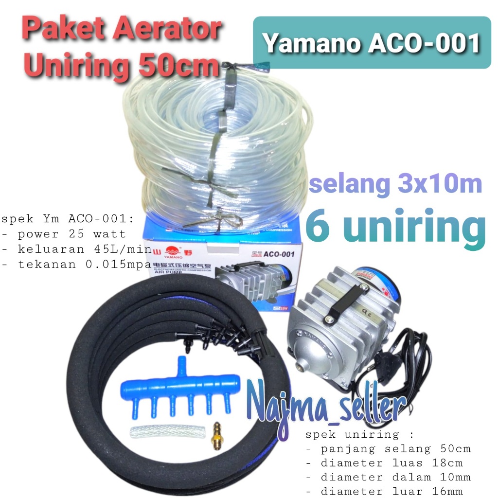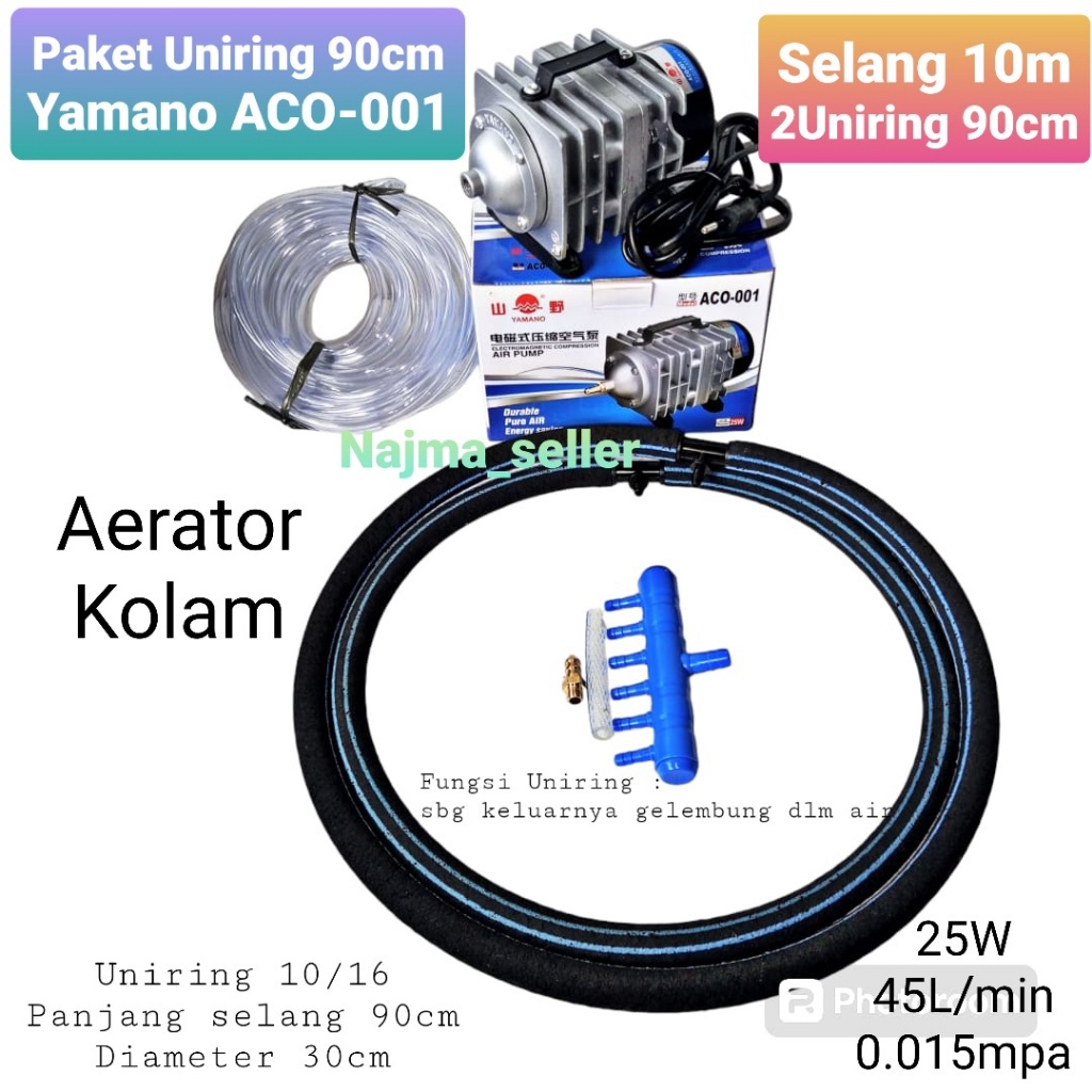 *NAJMASELLER* || Paket Aerator Blower UNIRING, Yamano ACO 001. Selang uniring 90cm dan 50cm. Khusus untuk Kolam ikan dan