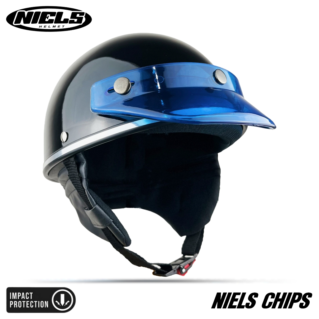 HELM BOGO RETRO CHIPS DEWASA LIST CHROME PET PENDEK JAPAN SNI MOTORCYCLE NIELS HELM CARGLOSS ORIGINAL