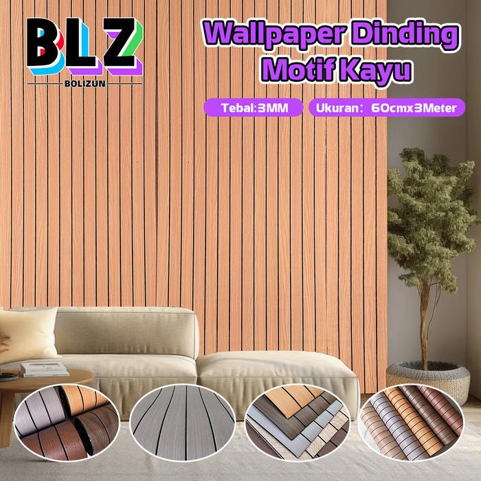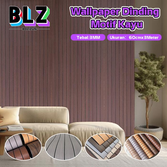 Wallpaper BOLIZUN Wallpaper Dinding Motif Kayu Garis garis tekstur 3D aesthetic Motif Timbul tebal