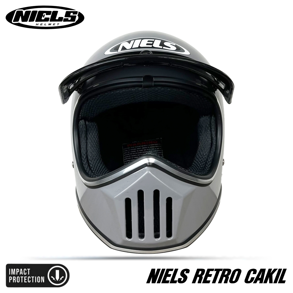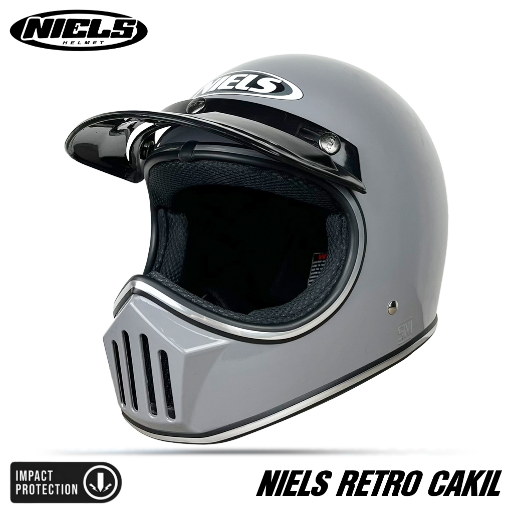 HELM BOGO NIELS CAKIL HELM FULL FACE RETRO LIST CHROME FREE PET SNI HELM CARGLOSS ORIGINAL