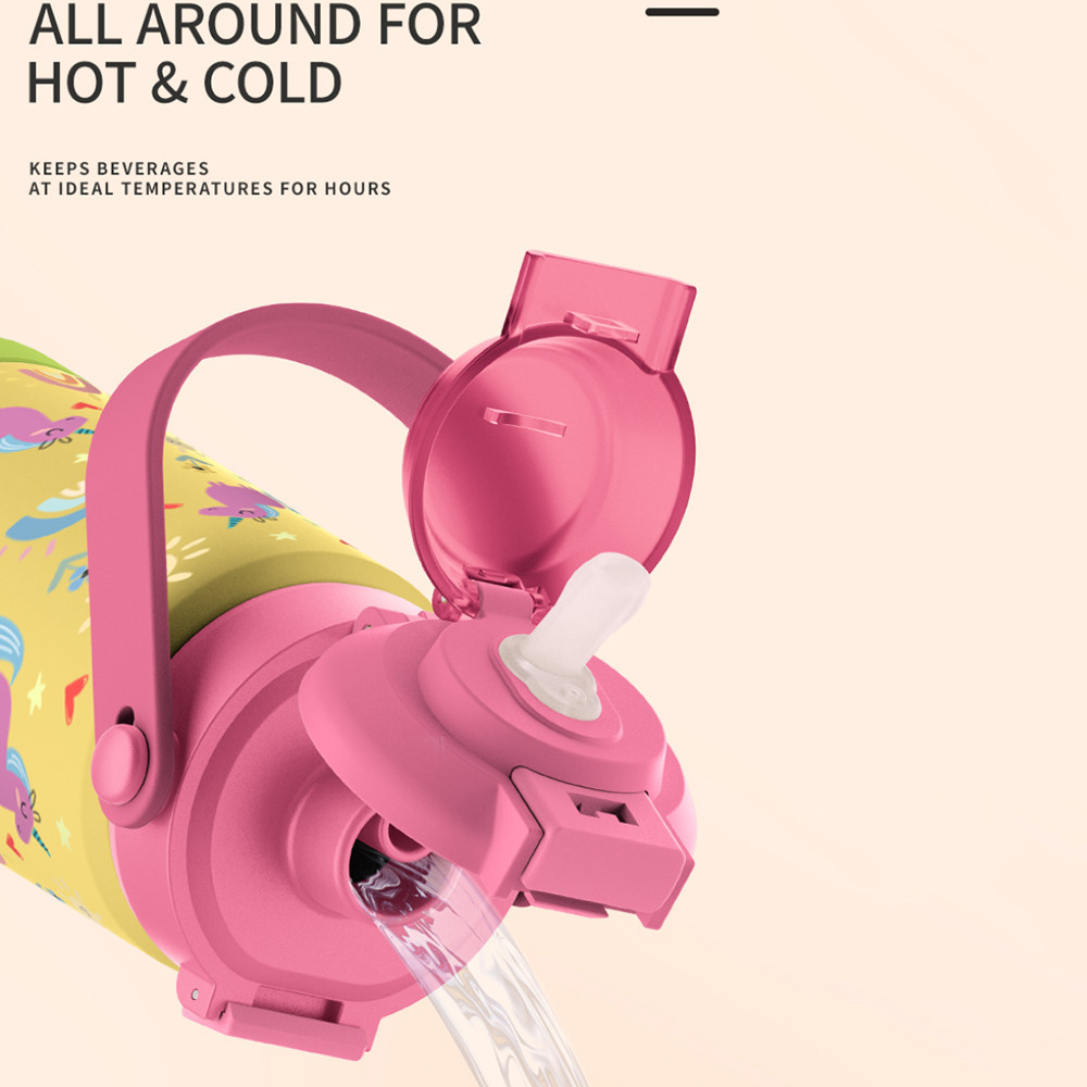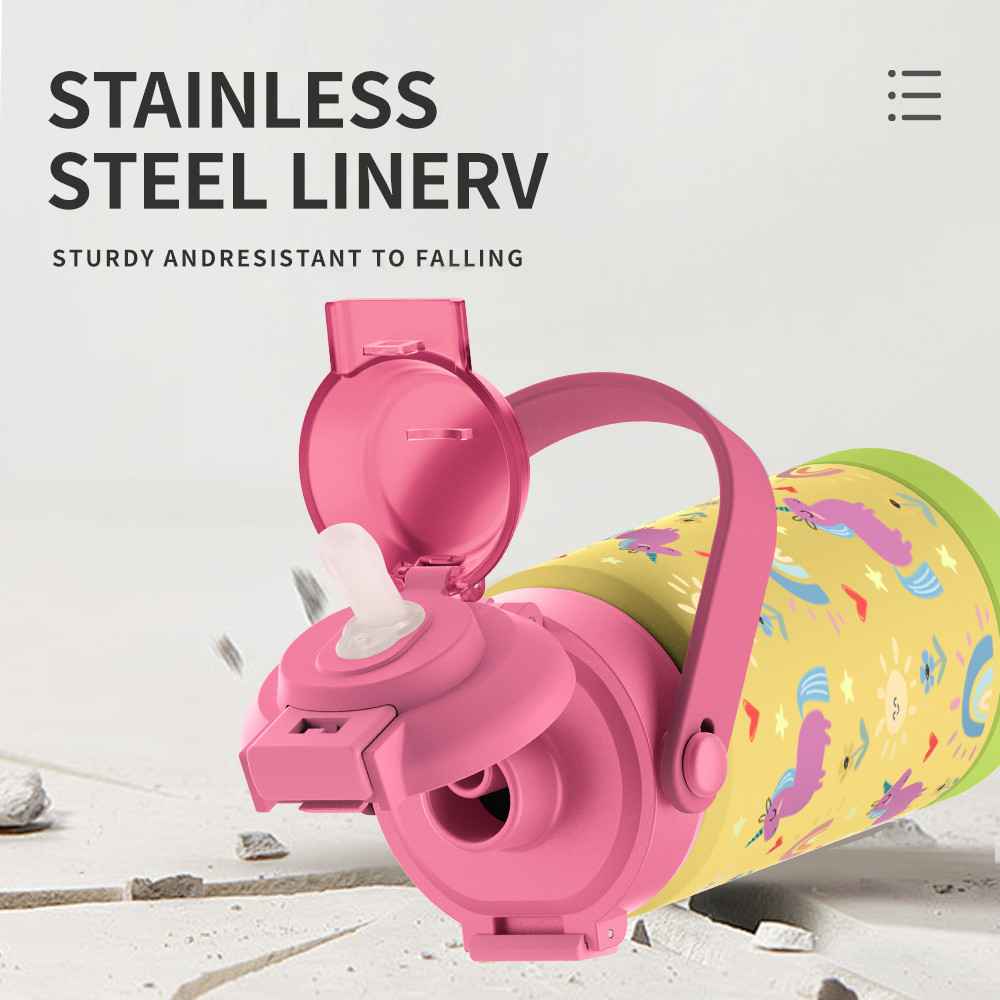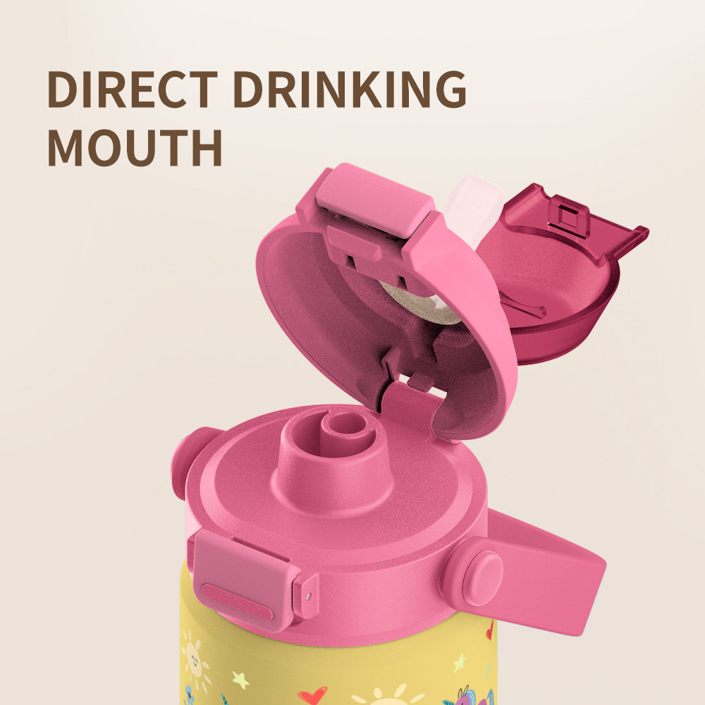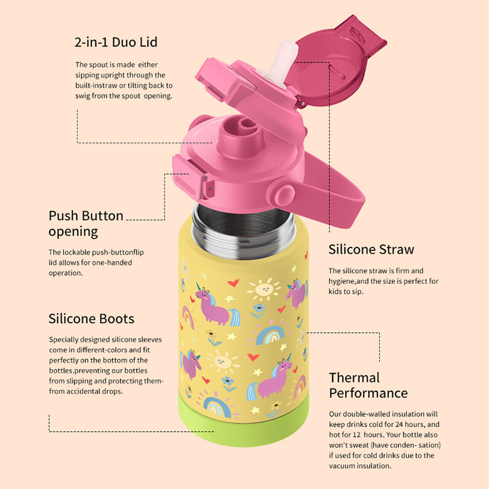 Dearday 350ml Botol Anak Tumbler 304 Stainless Steel BPA FREE Dengan Sedotan Tahan Panas Multi Functional Lid D-245 Green