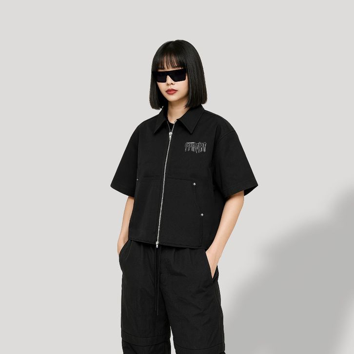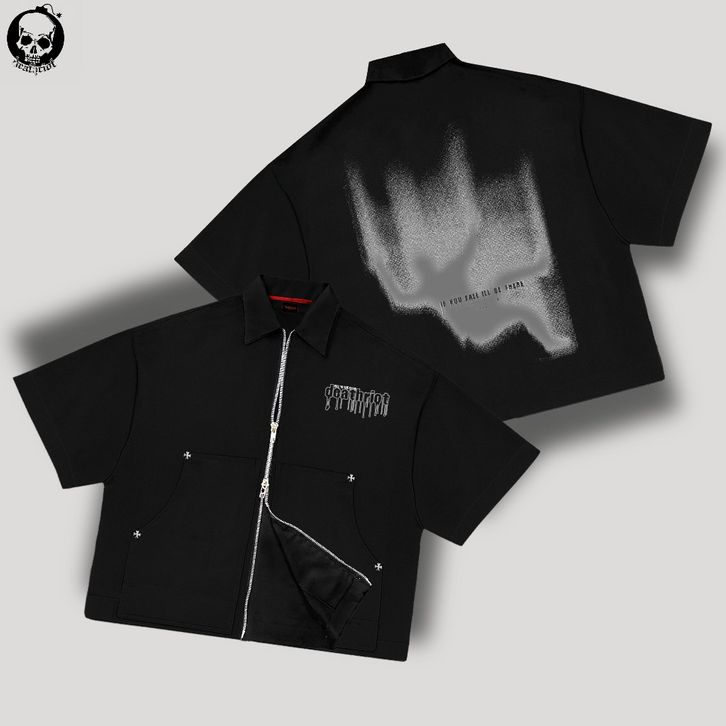 TERLAKU DTRT - Workshirt double zipper boxy fit kemeja kerja tangan pendek skena pria hitam spike unisex ohogf