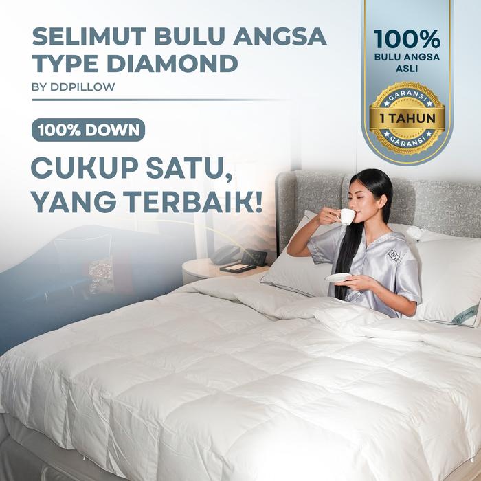 DDPillow Set Selimut Bulu Angsa Asli + Cover Cotton Polos, Type Diamond 100% Down / Duvet / Selimut