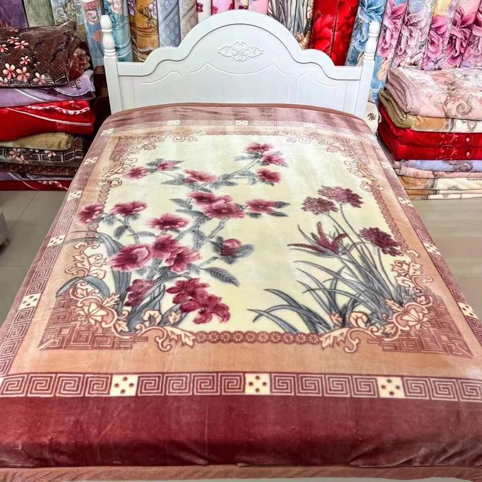 Selimut Bulu Tebal Polyester Motif Bunga Uk Dewasa 200cm x 220cm