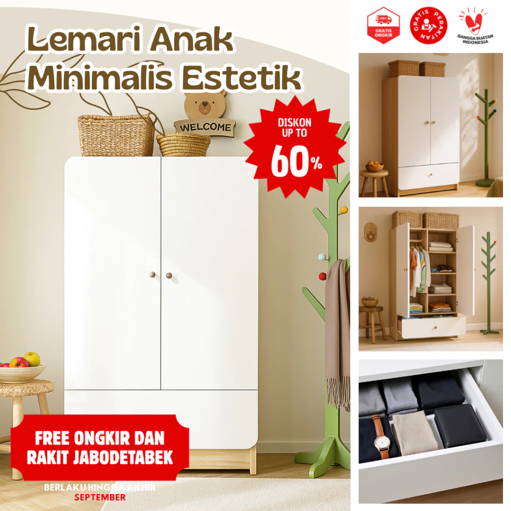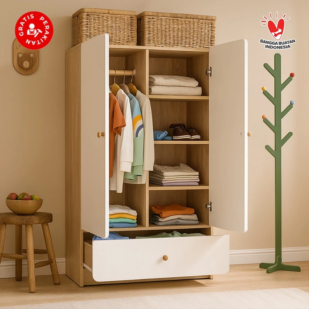 Lemari Baju Anak 2 Pintu Moderen Minimalis Lemari Bayi Balita