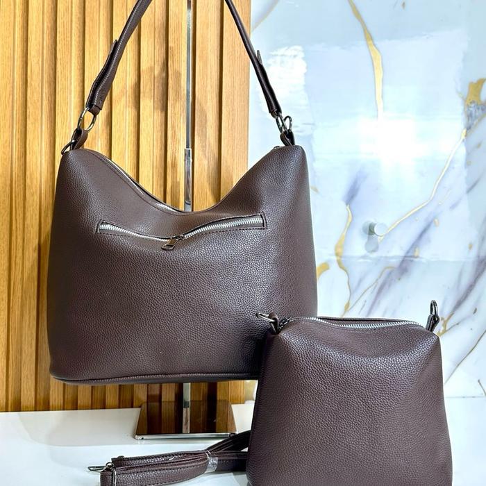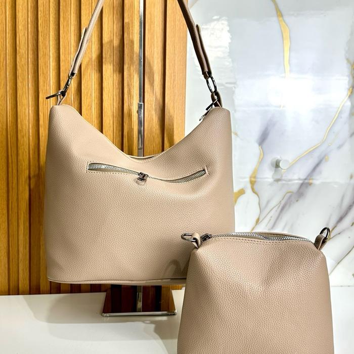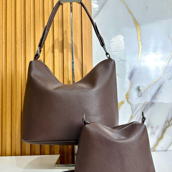 ELLENA TAS HOBO WANITA BY NASTA BAHAN KULIT LEMBUT BERTEKSTUR FREE POUCH BISA SELEMPANG ADA KANTONG BELAKANG TOTE - MOCA