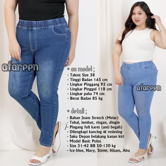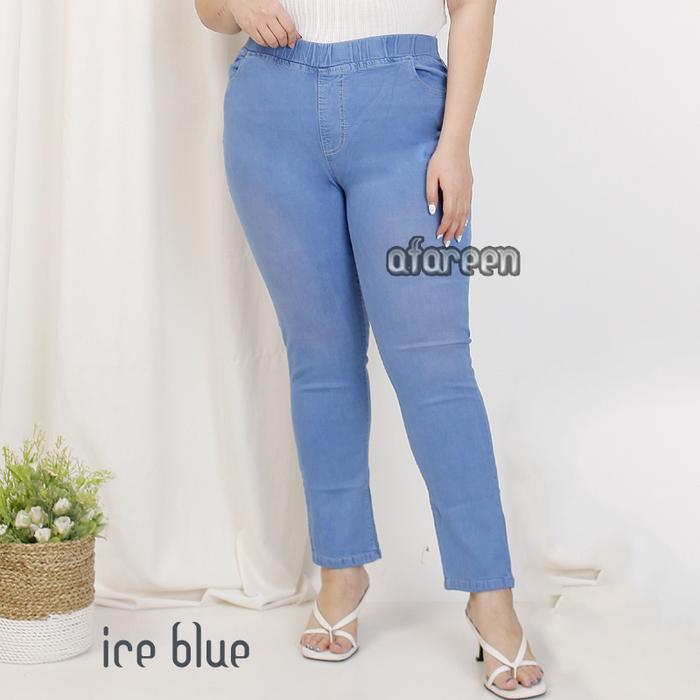 AFAREEN - CELANA PANJANG JEANS WANITA PINGGANG KARET LEGGING JEANS STRETCH MELAR SIZE 27-43 - NAVY, 27