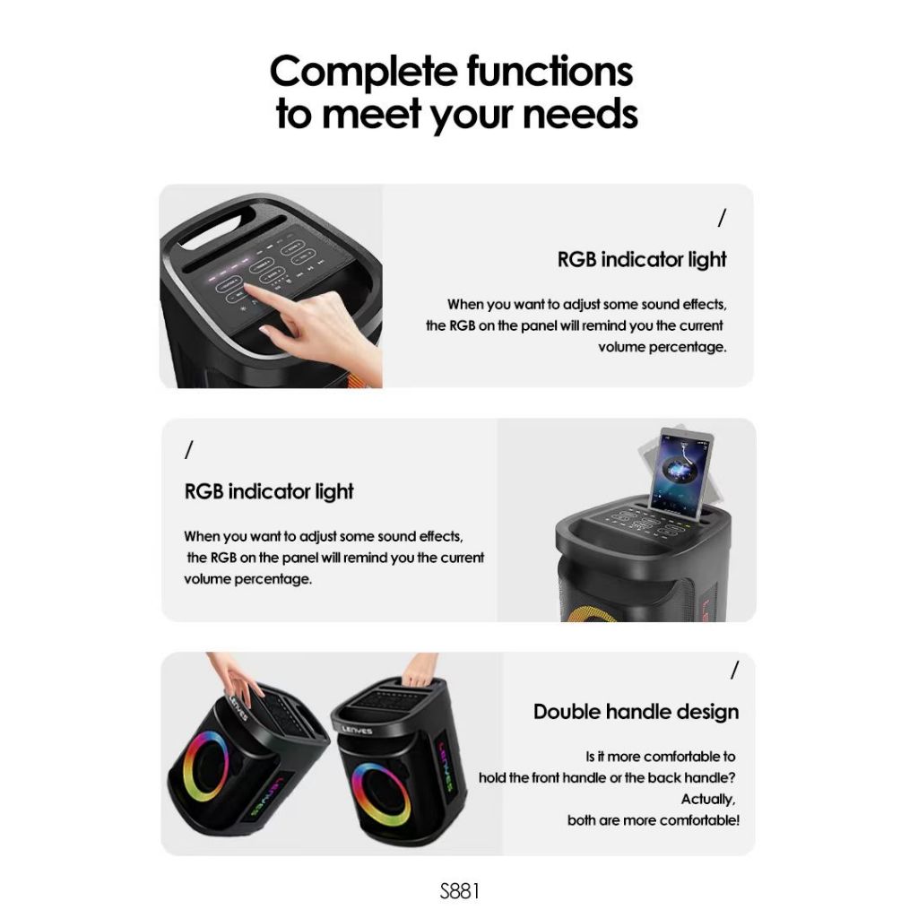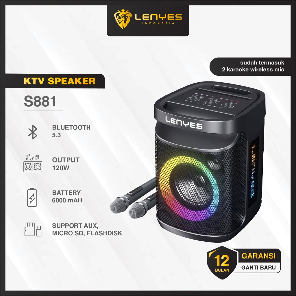 LENYES S881 120W KTV WIRELESS SPEAKER + MICROPHONE KARAOKE BLUETOOTH 5.3 ORIGINAL LENYES OFFICIAL STORE