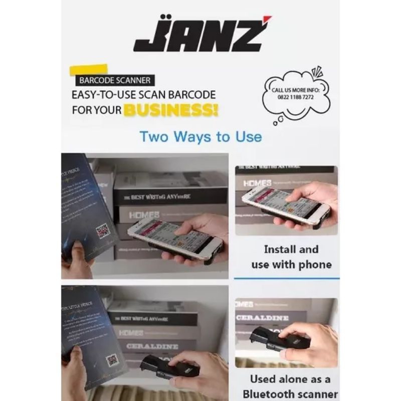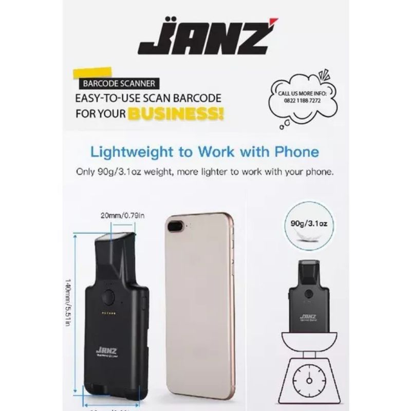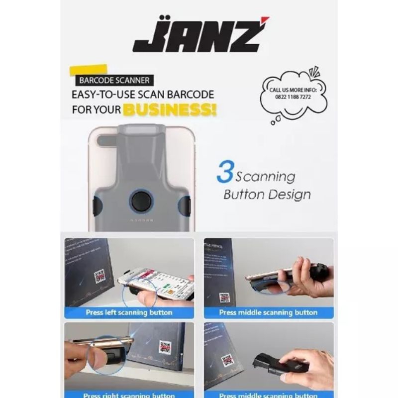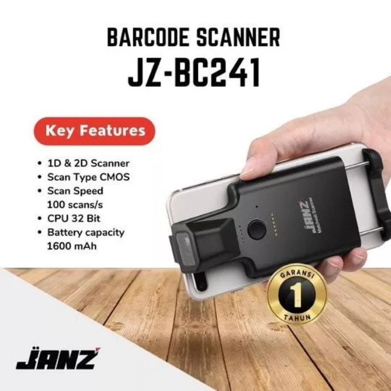 scanner barcode 1D 2D QR CODE JZ-BC241 JANZ koneksi bluetooth ke HP warranty 1 tahun
