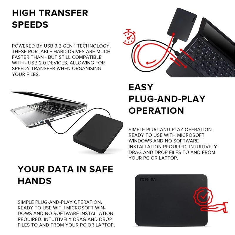 Toshiba Hard Drive Eksternal 1TB 2TB Hard Drive Penyimpanan Data Eksternal Cocok untuk PC Laptop Windows Siap Hard Drive Eksternal Portabel