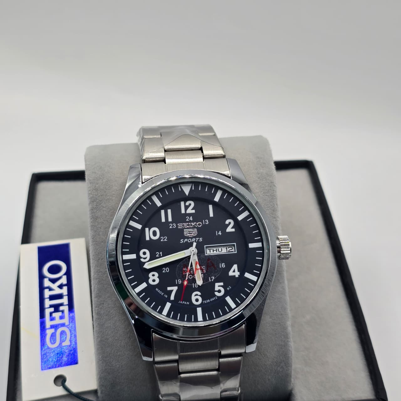 Jam Tangan Pria Analog Seiko Rantai Stainless Steel Tanggal Hari Aktif Super Premium