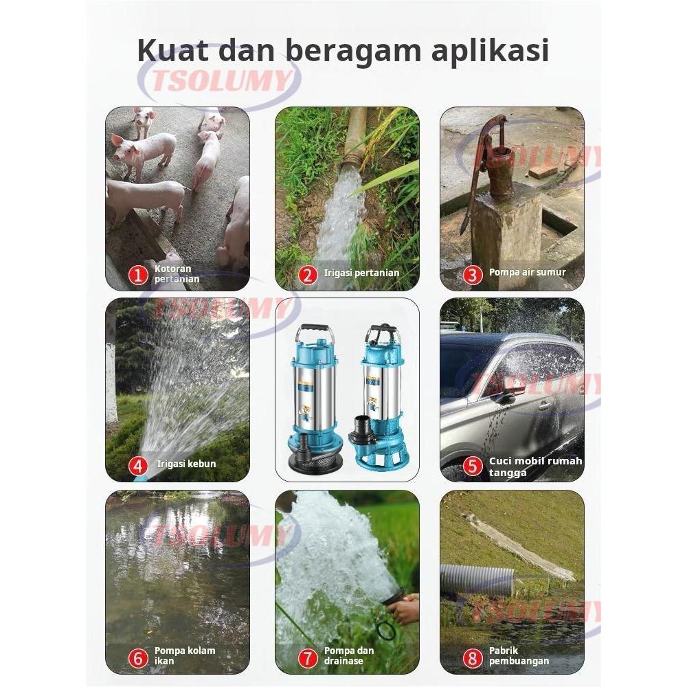 Tsolumy Pompa Celup Air Kotor WQD6-8 400W Stainless Steel Submersible 1.5 Inch Untuk Kolam & Limbah