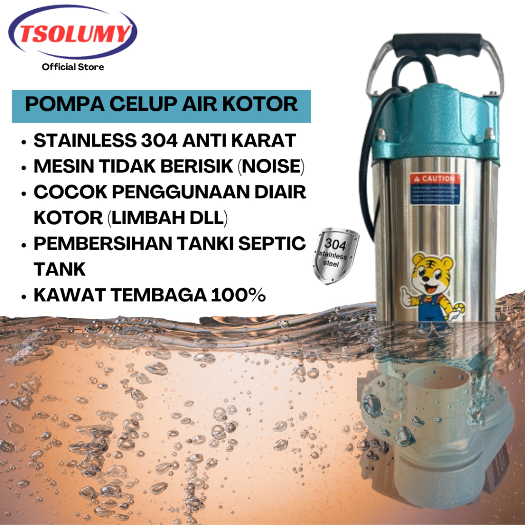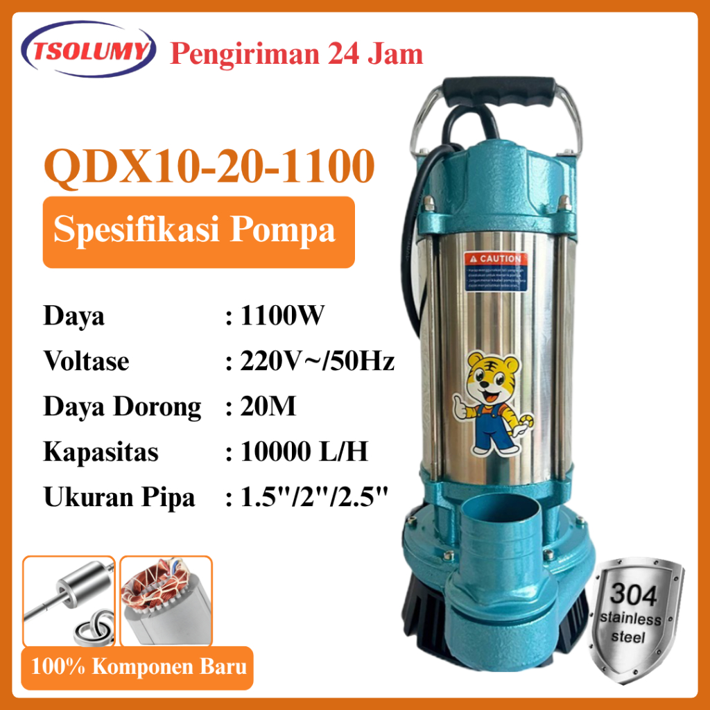 Tsolumy Pompa Celup Air Kotor QDX10-20-1100W Submersible Pump 2.5'/2'/1.5'inch Pompa Kolam lkan