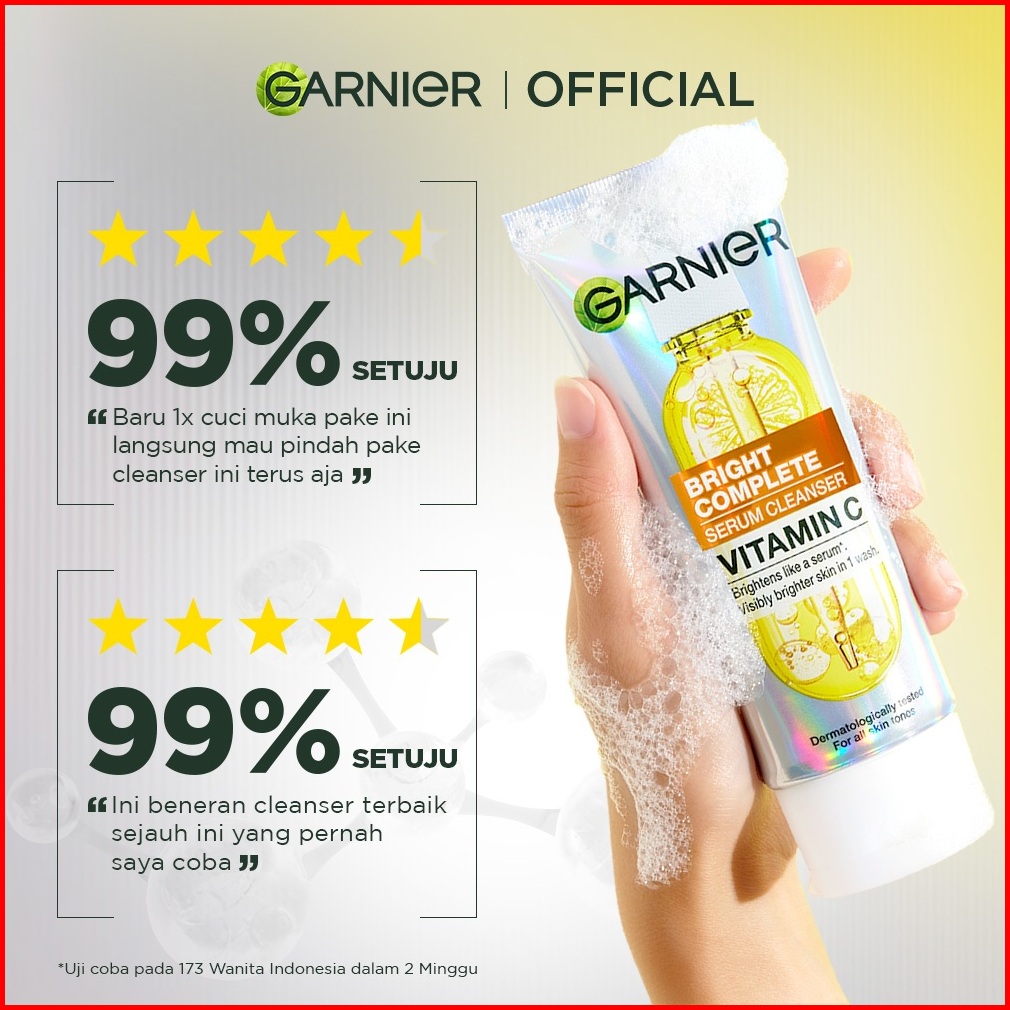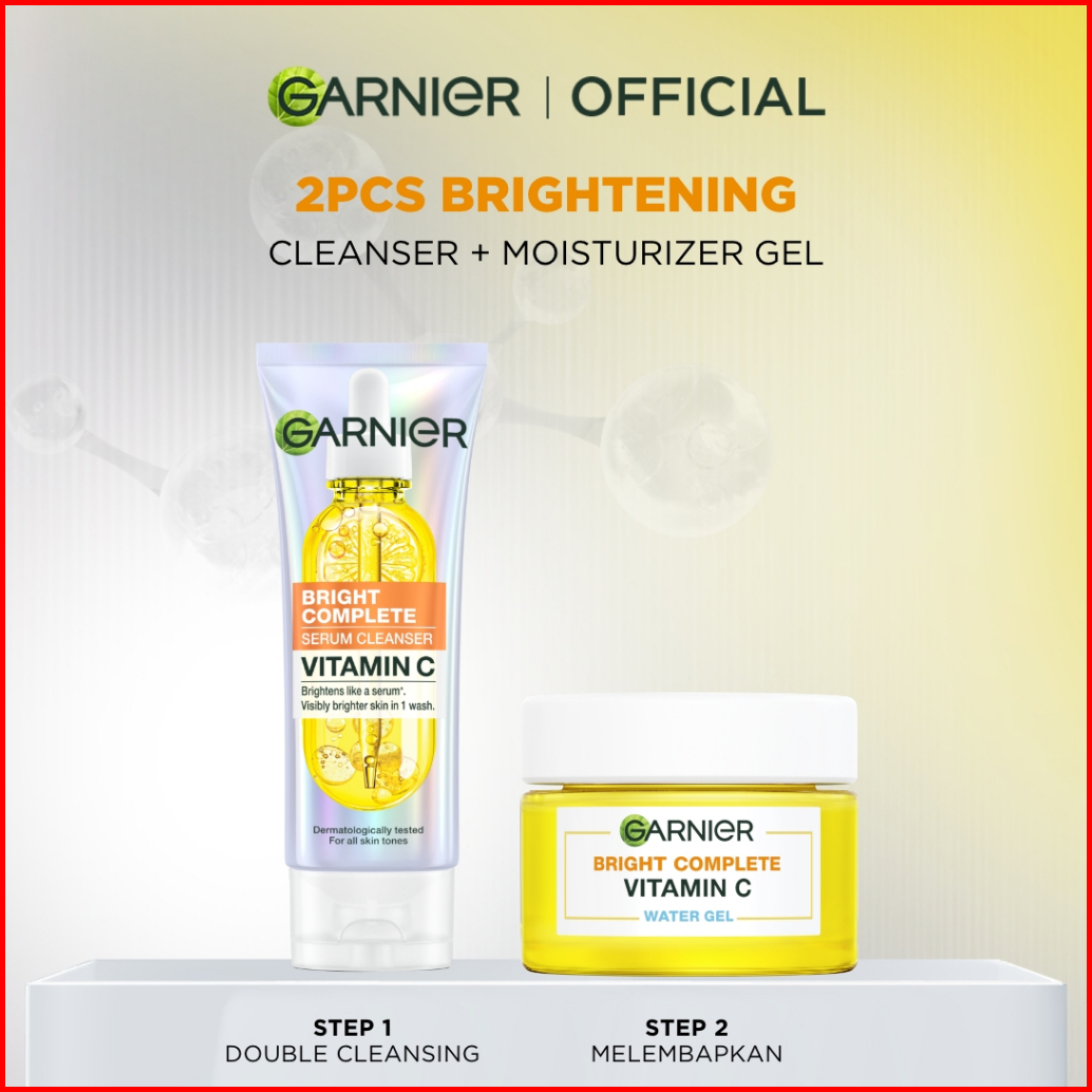 Garnier Facial Wash Bright Complete Vitamin C Serum Cleanser 100ml Paket Skincare Pembersih Wajah Mencerahkan Seperti Se