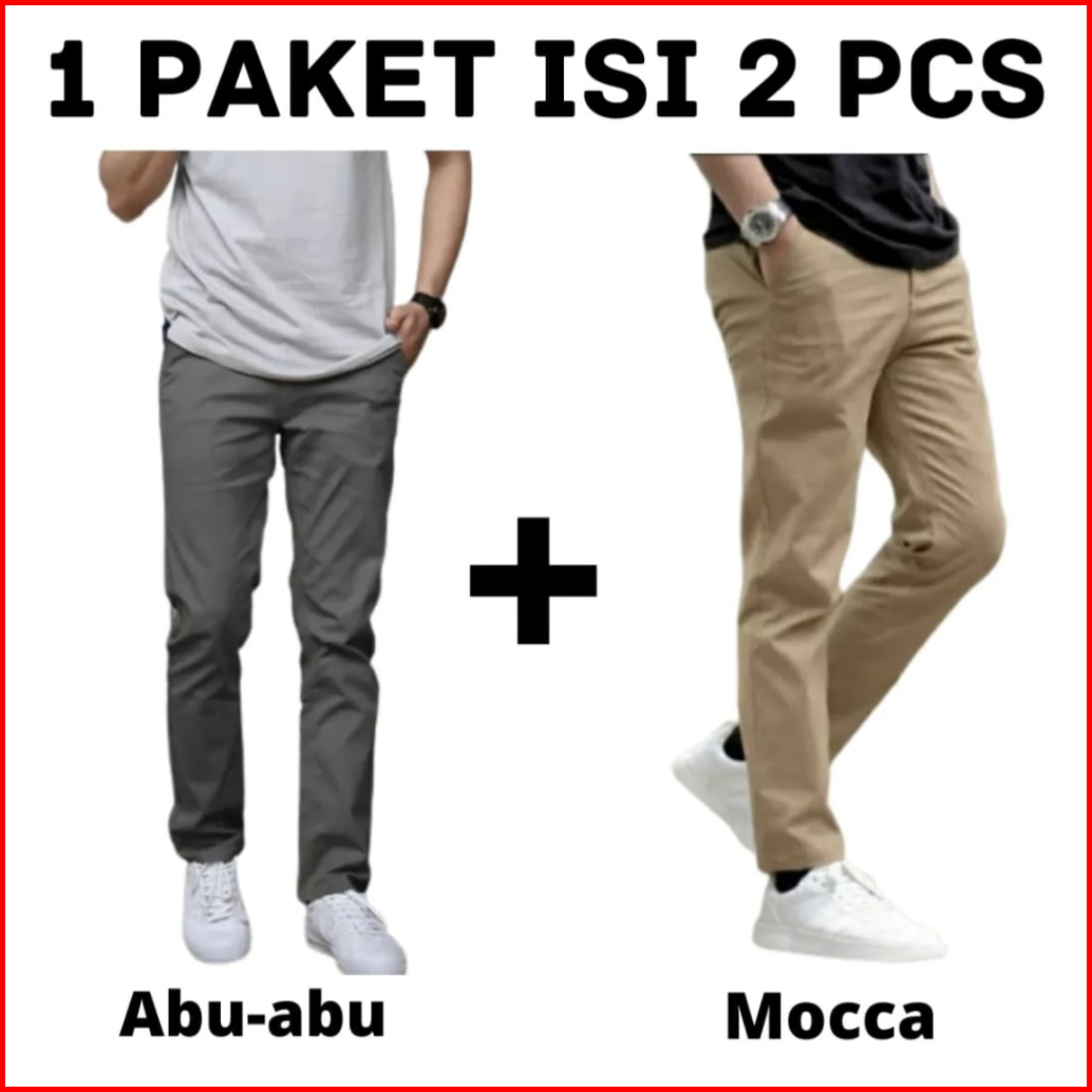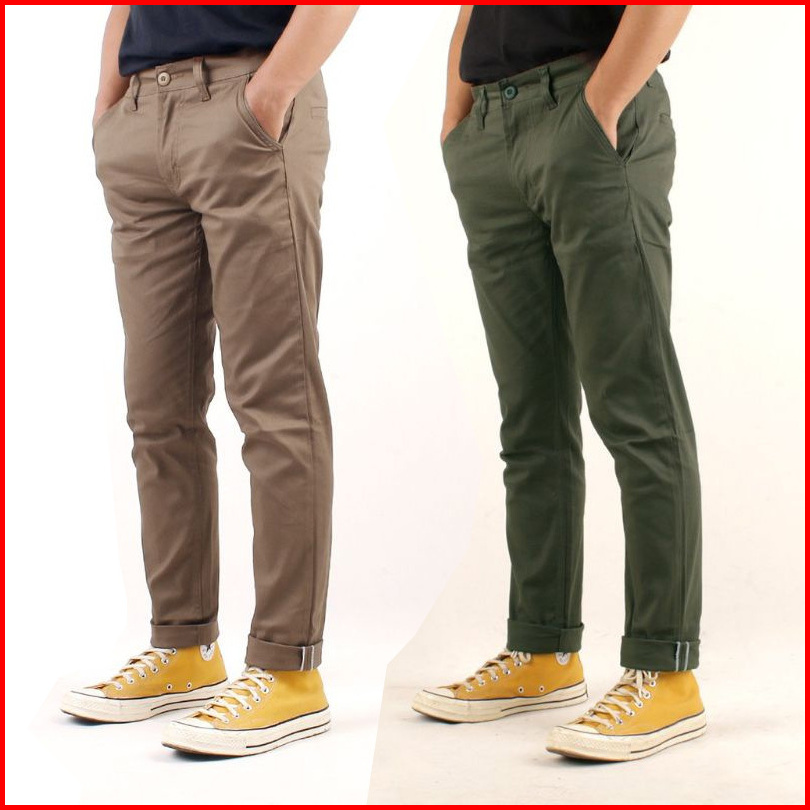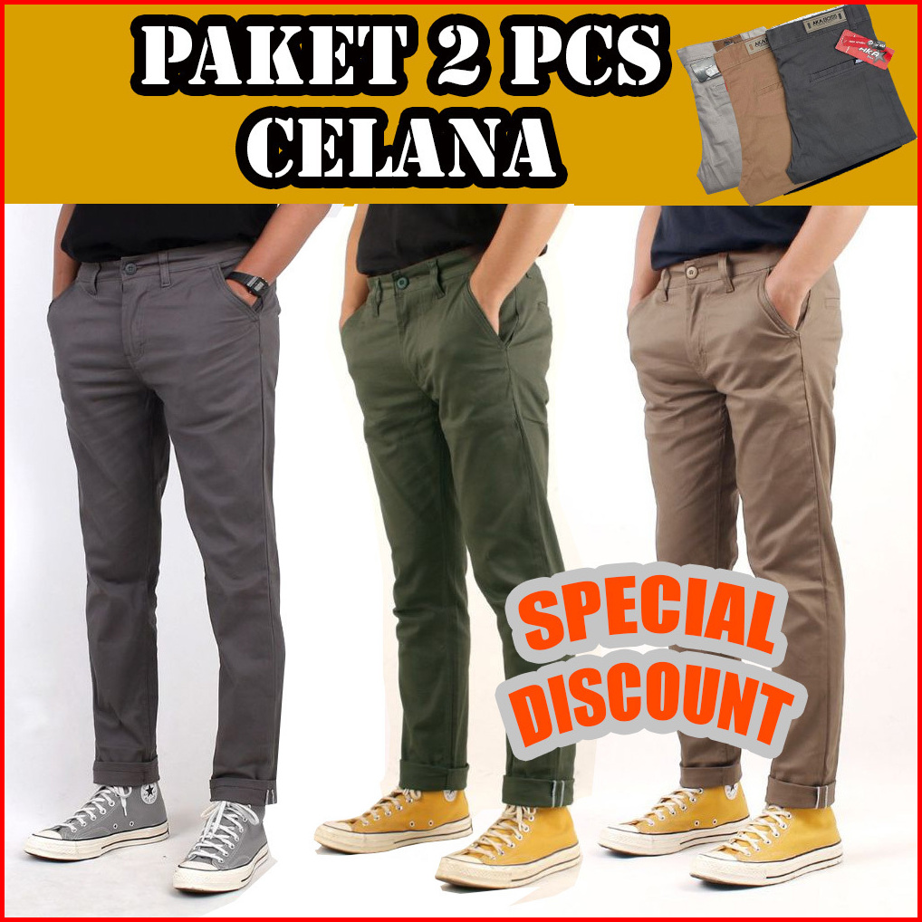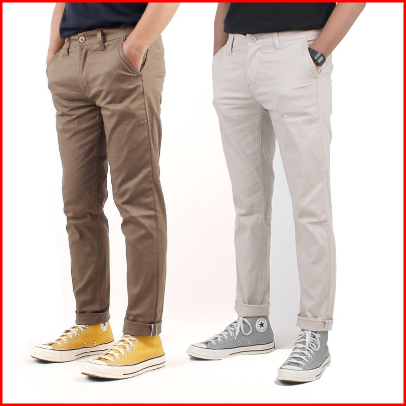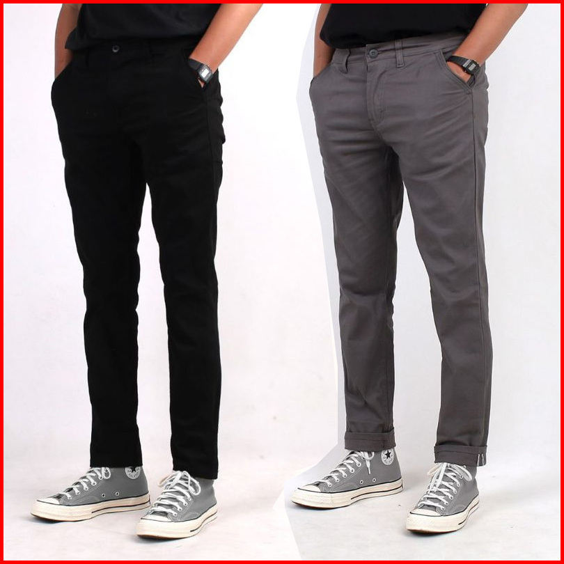 Promo 2pcs 90ribu Celana Chino Panjang Slim Fit Bahan Combed Melar Pria Dewasa