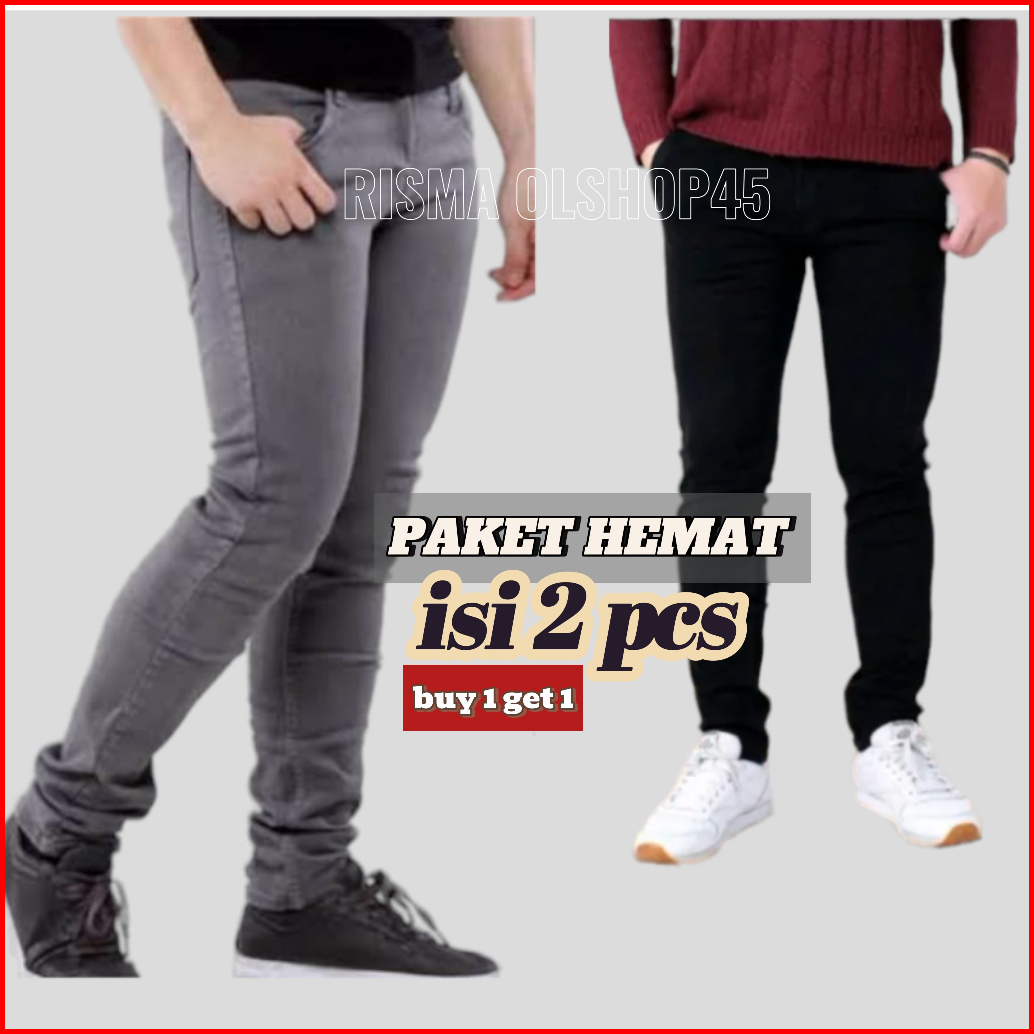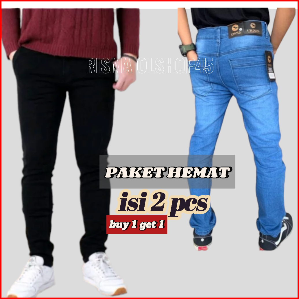 Paket Hemat Beli 1 Gratis Satu Celana Jeans Pria Slimfit Bahan Melar Sofe Jeans Premium Pensil Cowok