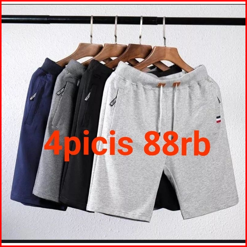 Paket 4pcs Celana Pendek Pria Dewasa Bahan Babytery Saku Kantong Resleting