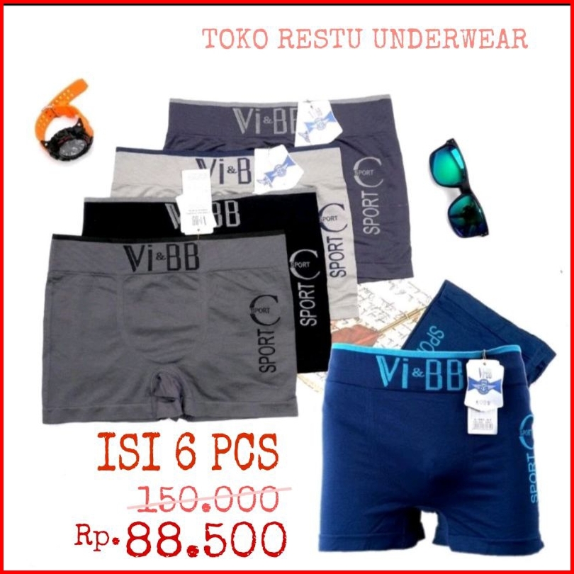 Tr Isi 6 Pcs Cd Pria Segiempat Vi Bb Celana Dalam Cowo Boxer Terlaris Nyaman Adem