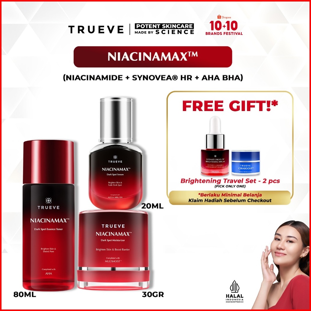 Aaliyah Massaid Approved - Paket 3 Pcs Trueve Niacinamax Dark Spot Serum Moisturizer Toner Niacinamide Synovea Aha Bha -