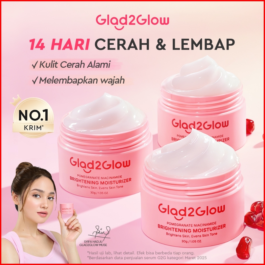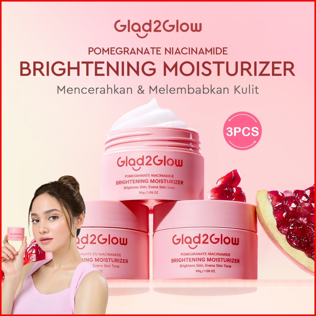 Glad2glow Pomegranate Niacinamide Brightening Moisturizer Mencerahkan Pemutih Kulit Gel Pelembab Bercahaya Krim Siang Da