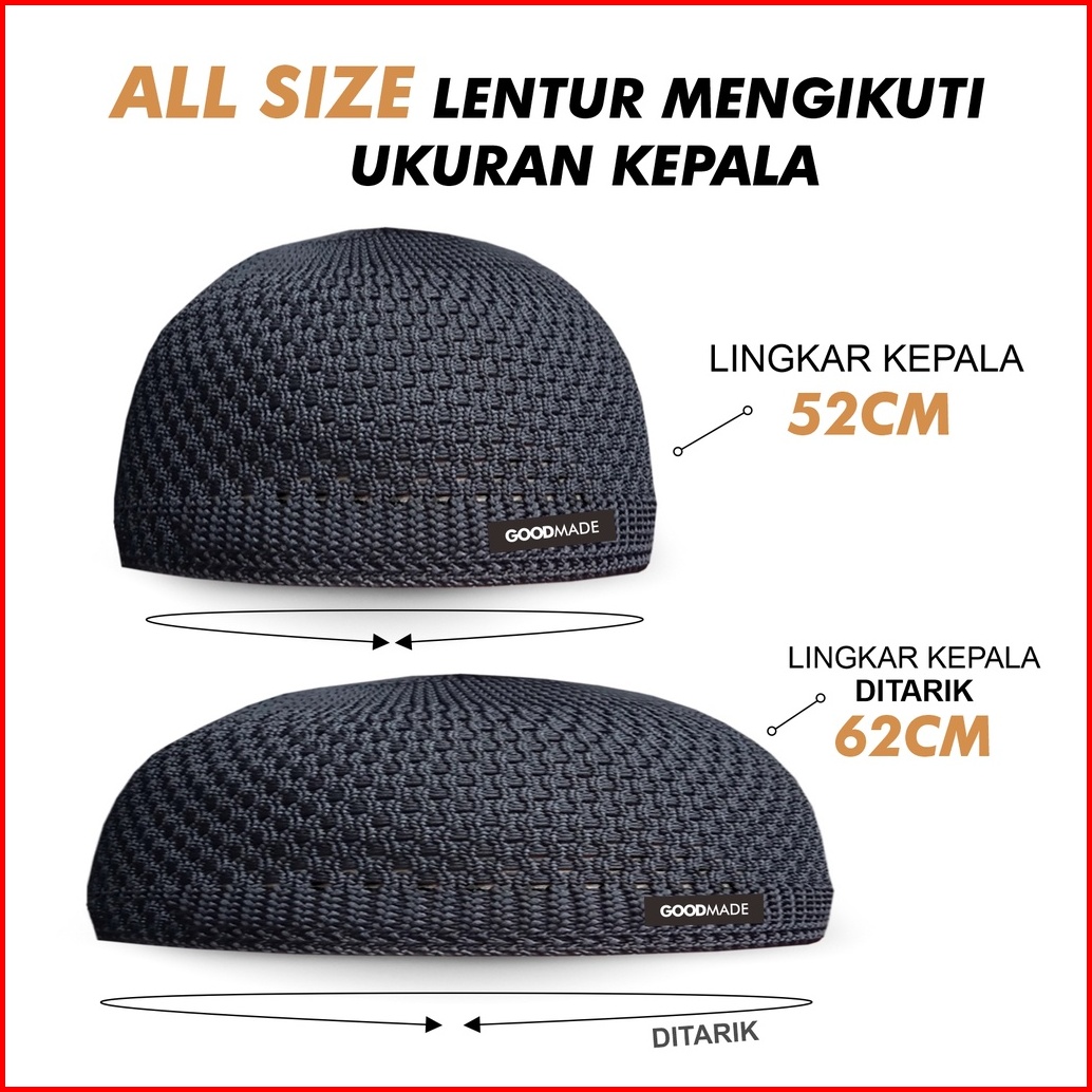 Good Made - Peci Rajut Dewasa Elastis Peci Rajut Peci Haji Putih