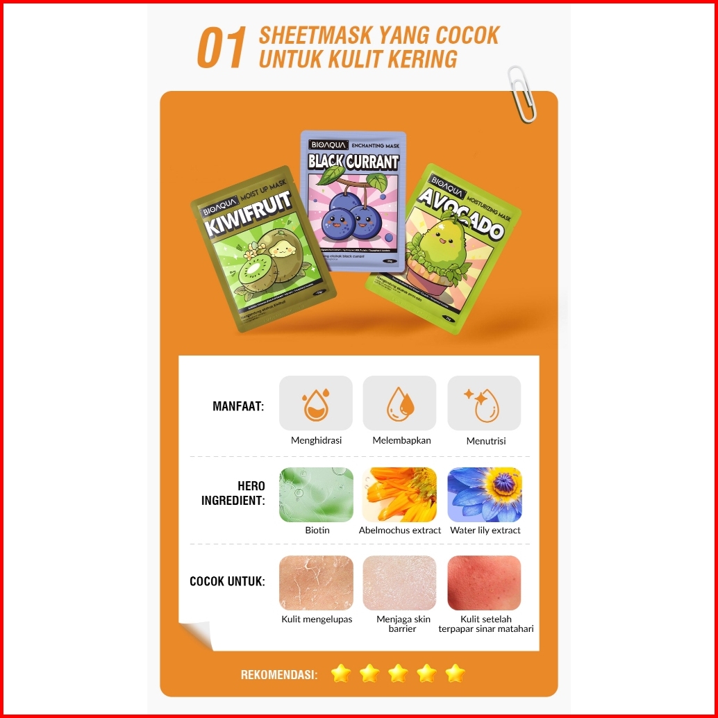 Bioaqua Sheet Mask Paket Brightening Moisturizing Skin Care Hydrating Essence Face Mask Anti Aging Masker Wajah Glowing