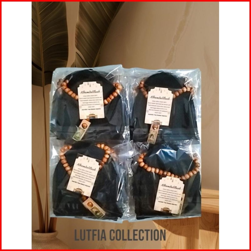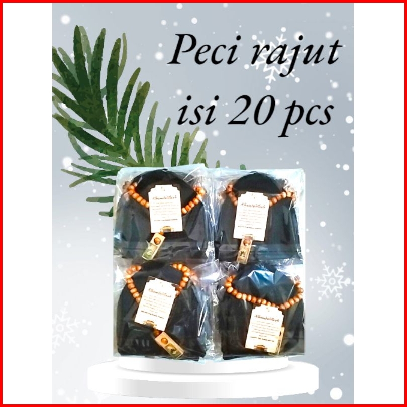 Paket 1kodi Isi-20 Pcs Peci Rajut Paket Oleh Umroh Haji 1 Pcs Kartu 1pcs Tasbih 33butir
