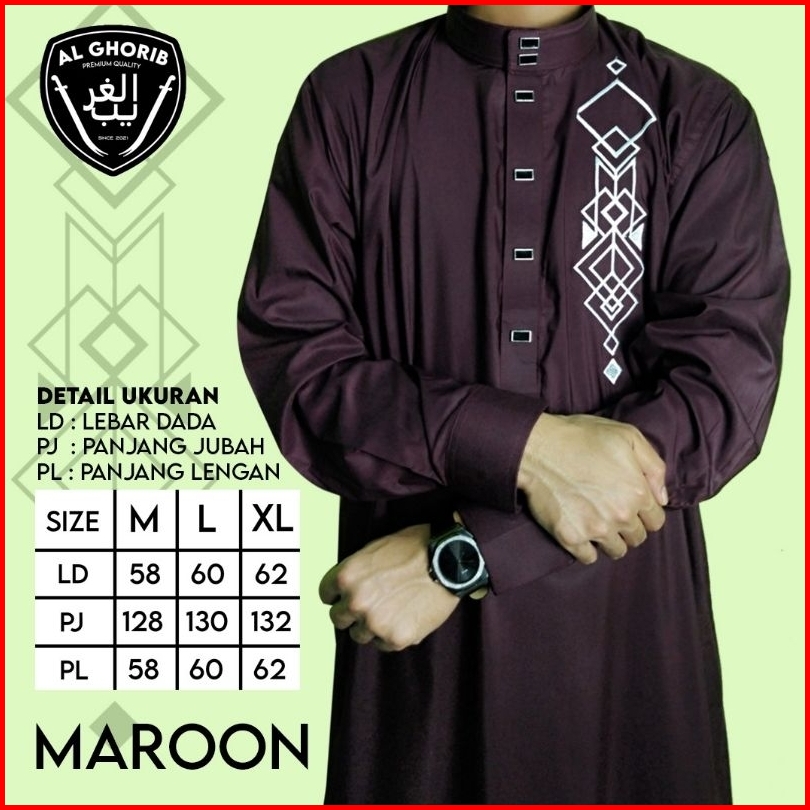 Jubah Gamis Thobe Pria Lengan Panjang Manset Al Ghorib