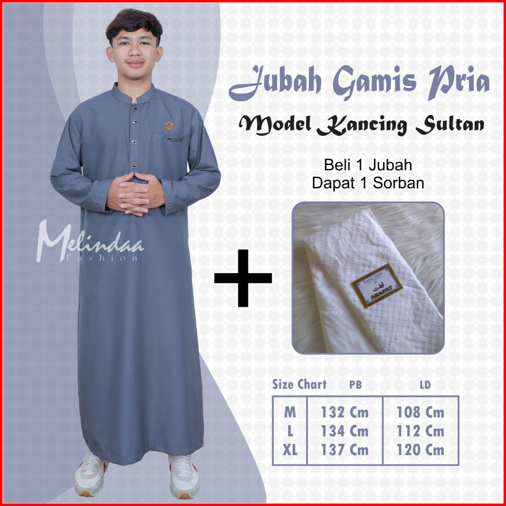 Beli 1 Jubah Dapat 1 Sorban Arafat Jubah Muslim Lengan Panjang Model Kancing Sultan Dubai - Gamis Pria Dewasa Remaja Kek