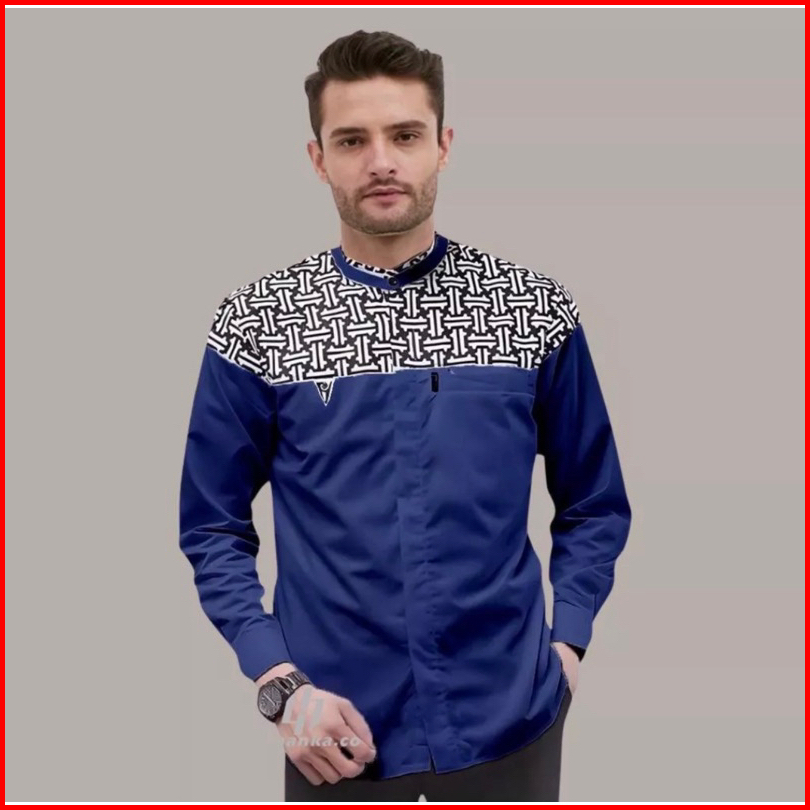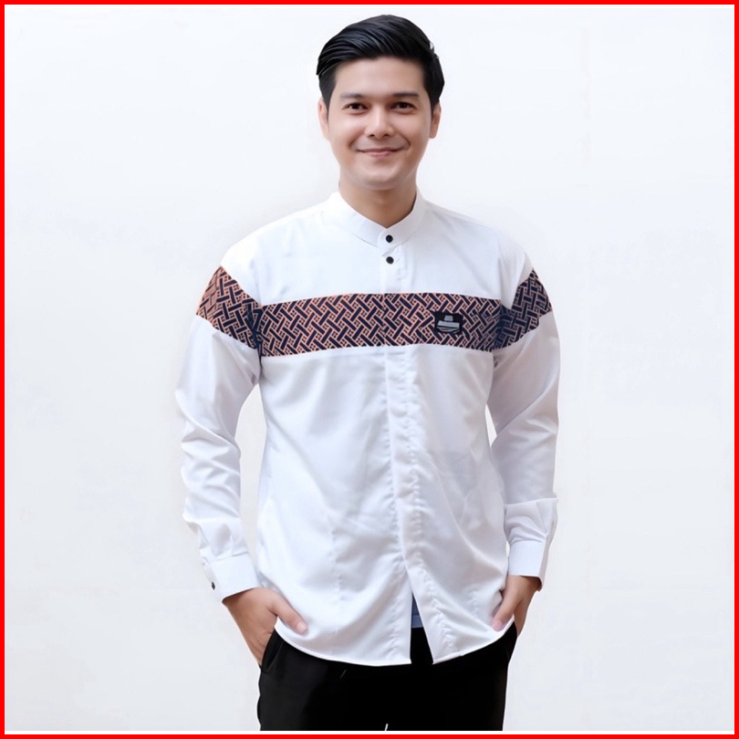 Baju Koko Motif Arsy Warna Putih Lengan Panjang Kombinasi Bordir Termurah