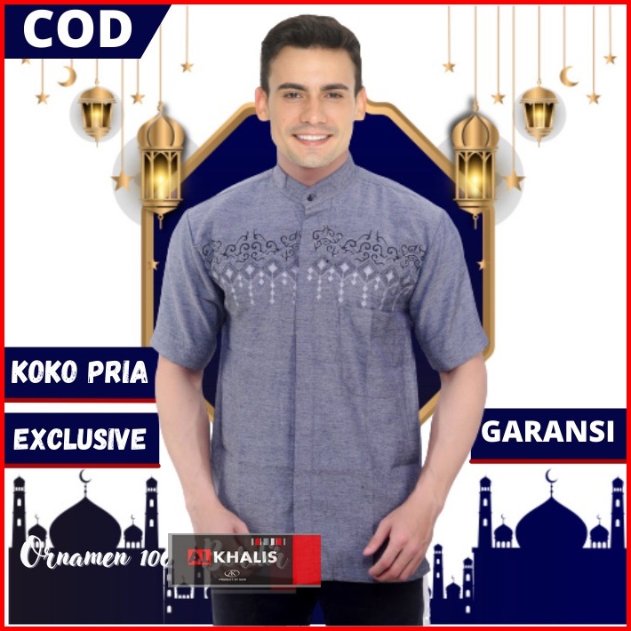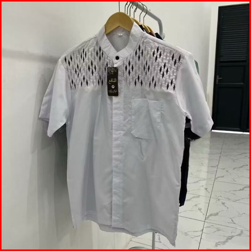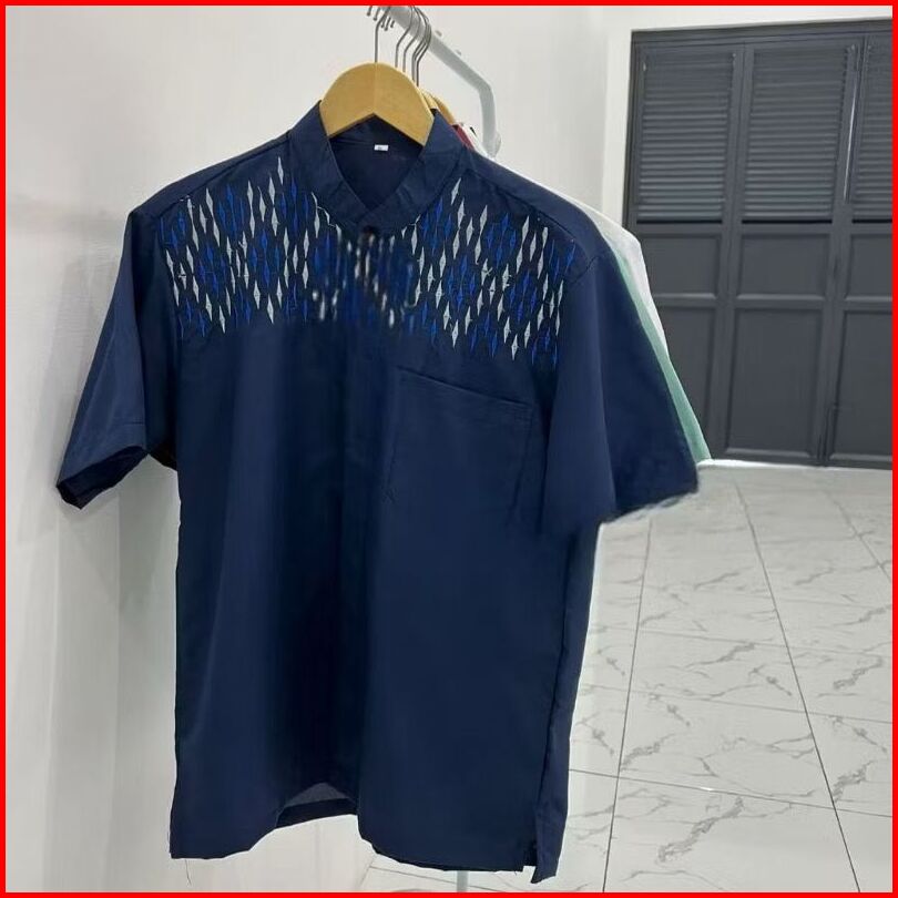 Baju Koko Motif Bordir Lengan Pendek Alkhalis