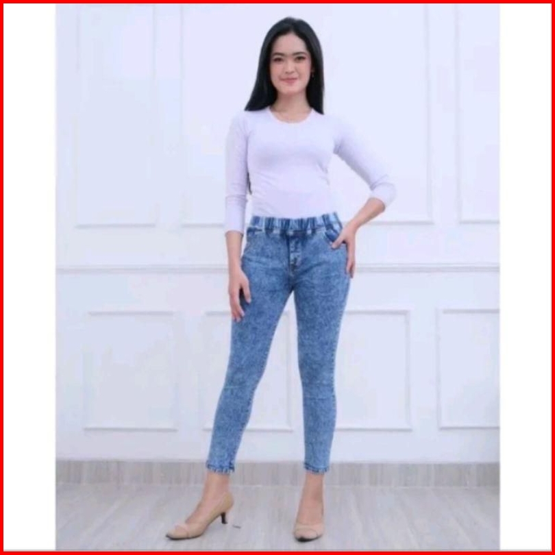 Celana Jeans Wanita Jumbo - Pinggang Karet - Denim Street Melar