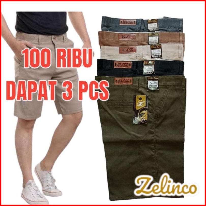 100ribu Dapat 3 Pcs Celana Chino Pendek Pria Premium Polos Non Strecht