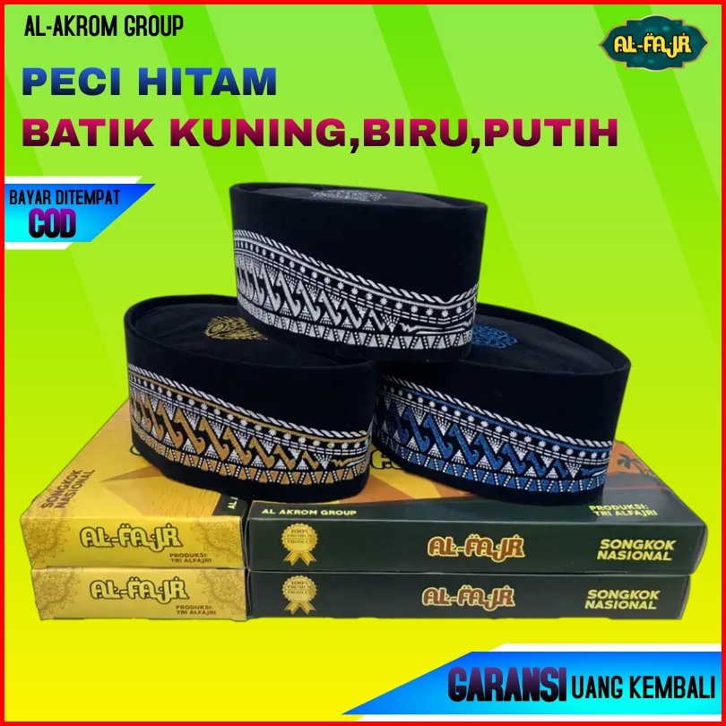 Peci Songkok Kopiah Hitam Motif Batik Kuning Anak Dan Dewasa Murah