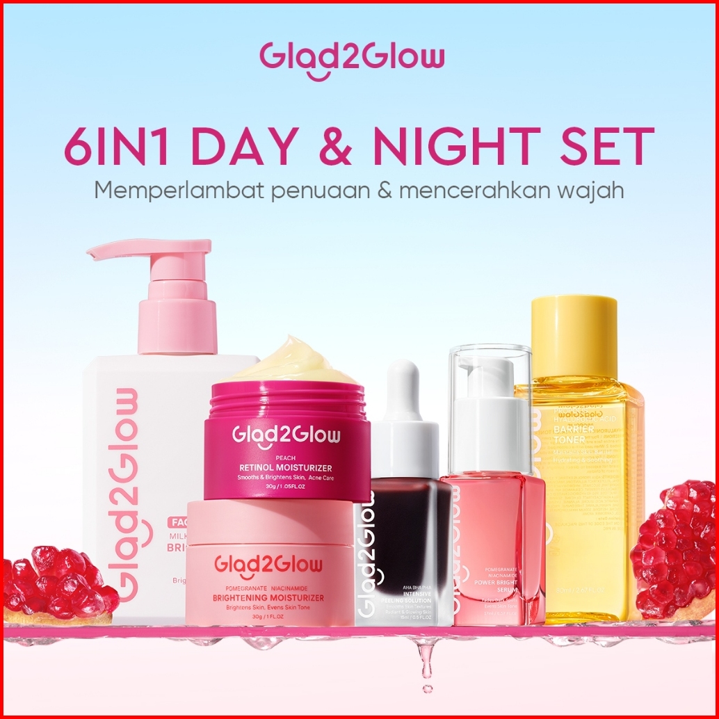 Glad2glow Day Night 6in1 Renew Set Bundle -milk Cleanser Brightening Toner Brightening Moisturizer Cleanser Brightening