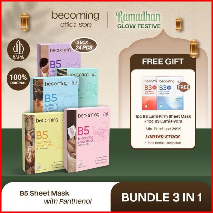 Bundle 3 Box Lebih Hemat Becoming B5 Sheet Mask 25ml Bundle Isi 3 Box Masker Wajah Sheet Mask Face